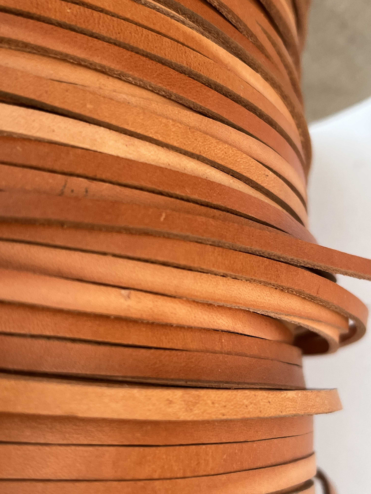Nastro in pelle a vegetale Naturale H 4 millimetri in vera pelle bovina conciata al vegetale naturale, segni, imperfezioni e alterazioni di colore non sono da considerarsi difetti, ma certificano la genuinità della materia prima esclusivamente naturale. semi rigido, cucitura centrale, ampiamente utilizzato nel settore della pelletteria e calzatura , pronto per essere utilizzato per la creazione di cinturini, collari, tracolle, infradito, sandali, ciabatte e molto altro.