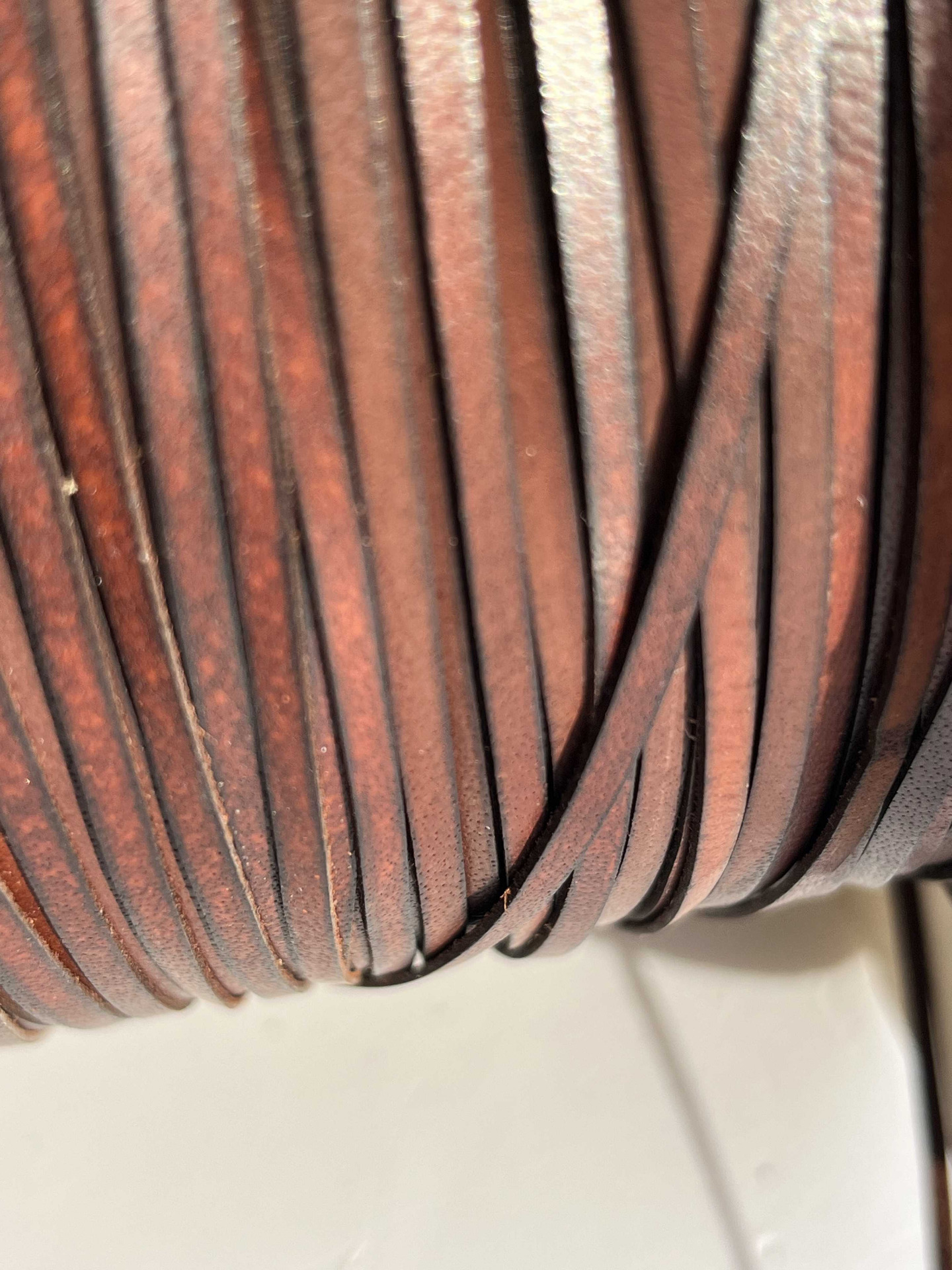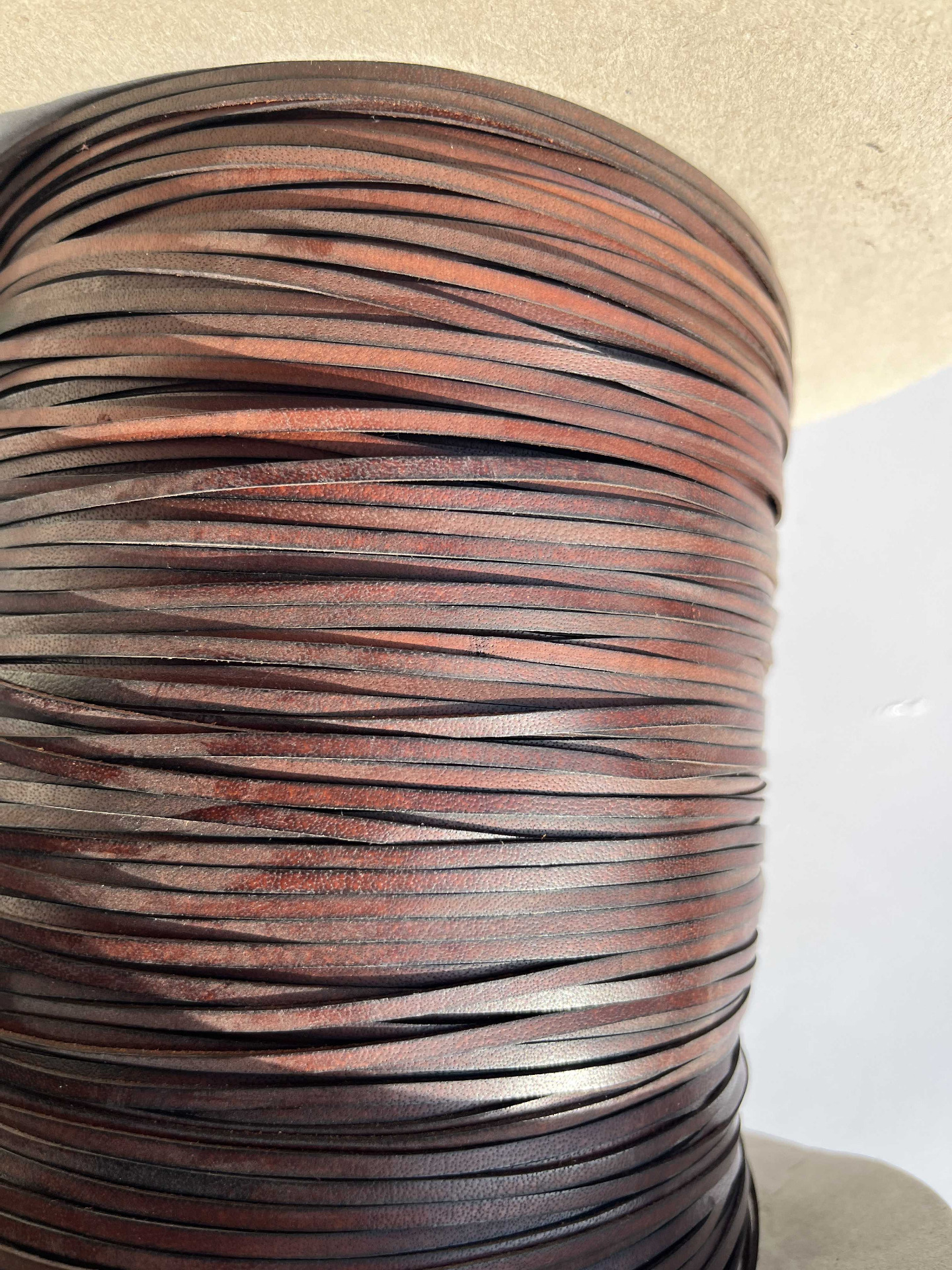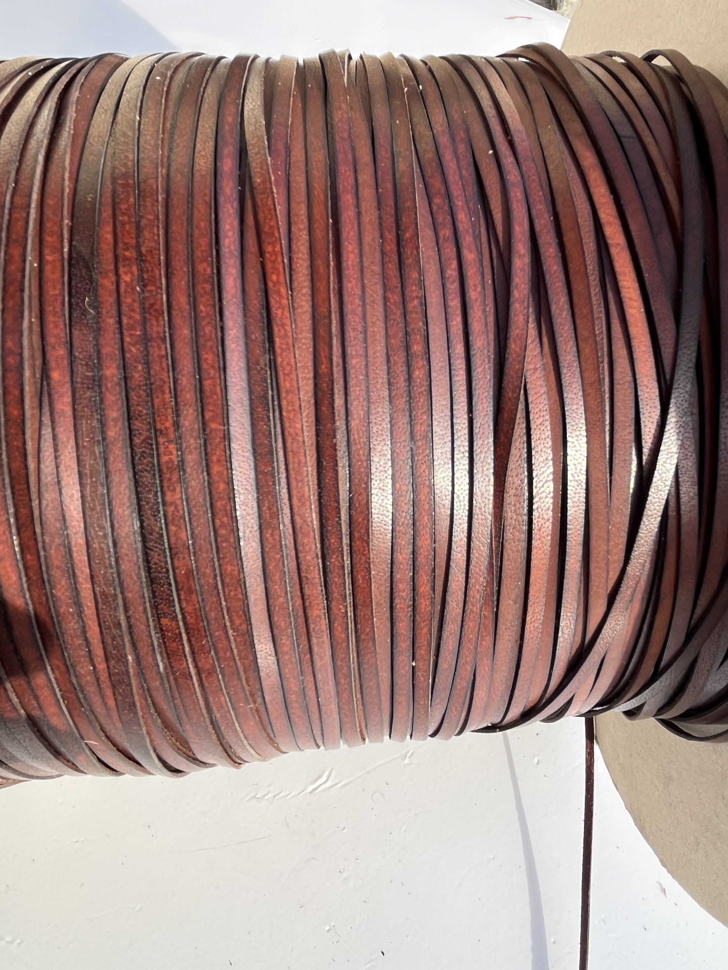 Nastro in vera pelle liscio piatto, larghezza 3 millimetri in vera pelle bovina conciata al vegetale, anilina segni e imperfezioni non sono da considerarsi difetti, ma caratteristiche naturali, morbido, ampiamente utilizzato nel settore della pelletteria e calzatura , pronto per essere utilizzato per la creazione di cinturini, collari, tracolle, infradito, sandali, ciabatte e molto altro.