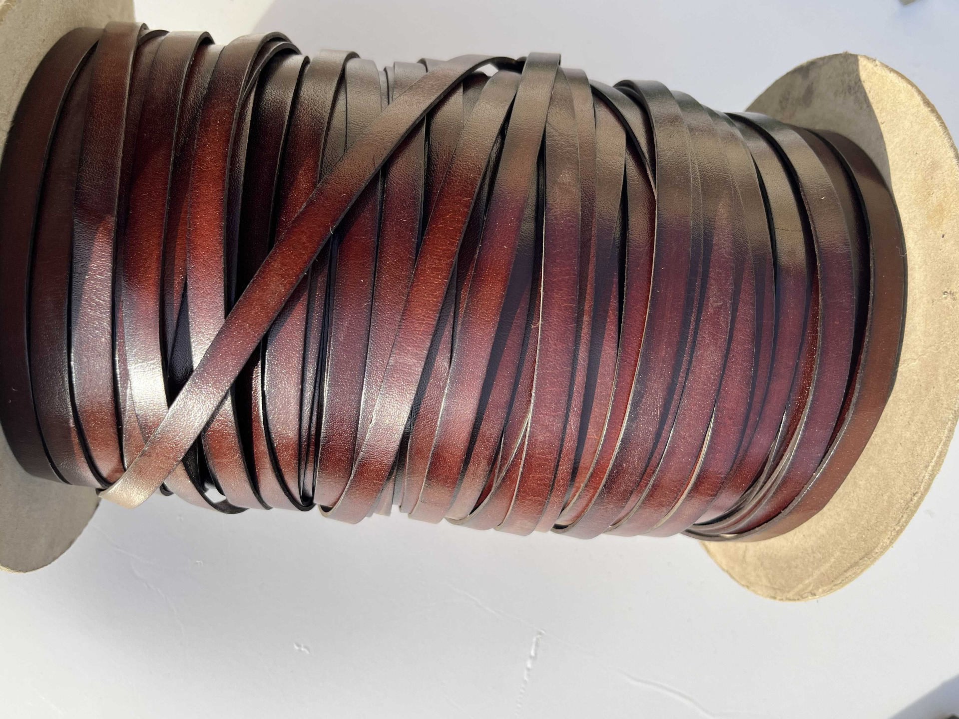 Nastro in vera pelle liscio piatto, larghezza 10 millimetri in vera pelle bovina conciata al vegetale, anilina segni e imperfezioni non sono da considerarsi difetti, ma caratteristiche naturali, semi rigido, ampiamente utilizzato nel settore della pelletteria e calzatura , pronto per essere utilizzato per la creazione di cinturini, collari, tracolle, infradito, sandali, ciabatte e molto altro.