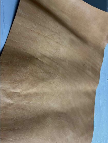 Pellame conciato 100% a vegetale naturale ingrassato al sego che riproduce l'antica e caratteristica della vacchetta senza nessuna correzione in rifinizione, segni e imperfezioni non sono da considerarsi difetti ma caratteristiche naturali della sua unicità, ideale per la produzione artigianale di piccola pelletteria, hobby creativi, svuotatasche, fondine, incisione e molto altro