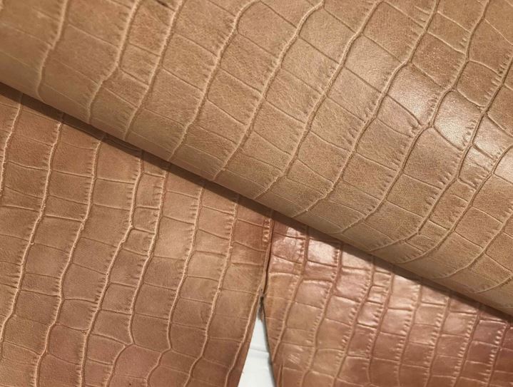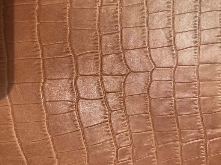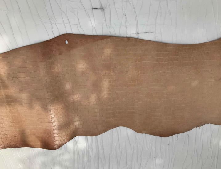 Pellame conciato a vegetale ingrassato al sego che riproduce l'antica e caratteristica della vacchetta, spesso e rigido stampato cocco per calzatura e pelletteria, pellame pieno fiore di botte senza nessuna correzione in rifinizione, segni e imperfezioni non sono da considerarsi difetti, ma certificano la genuinità della materia prima.