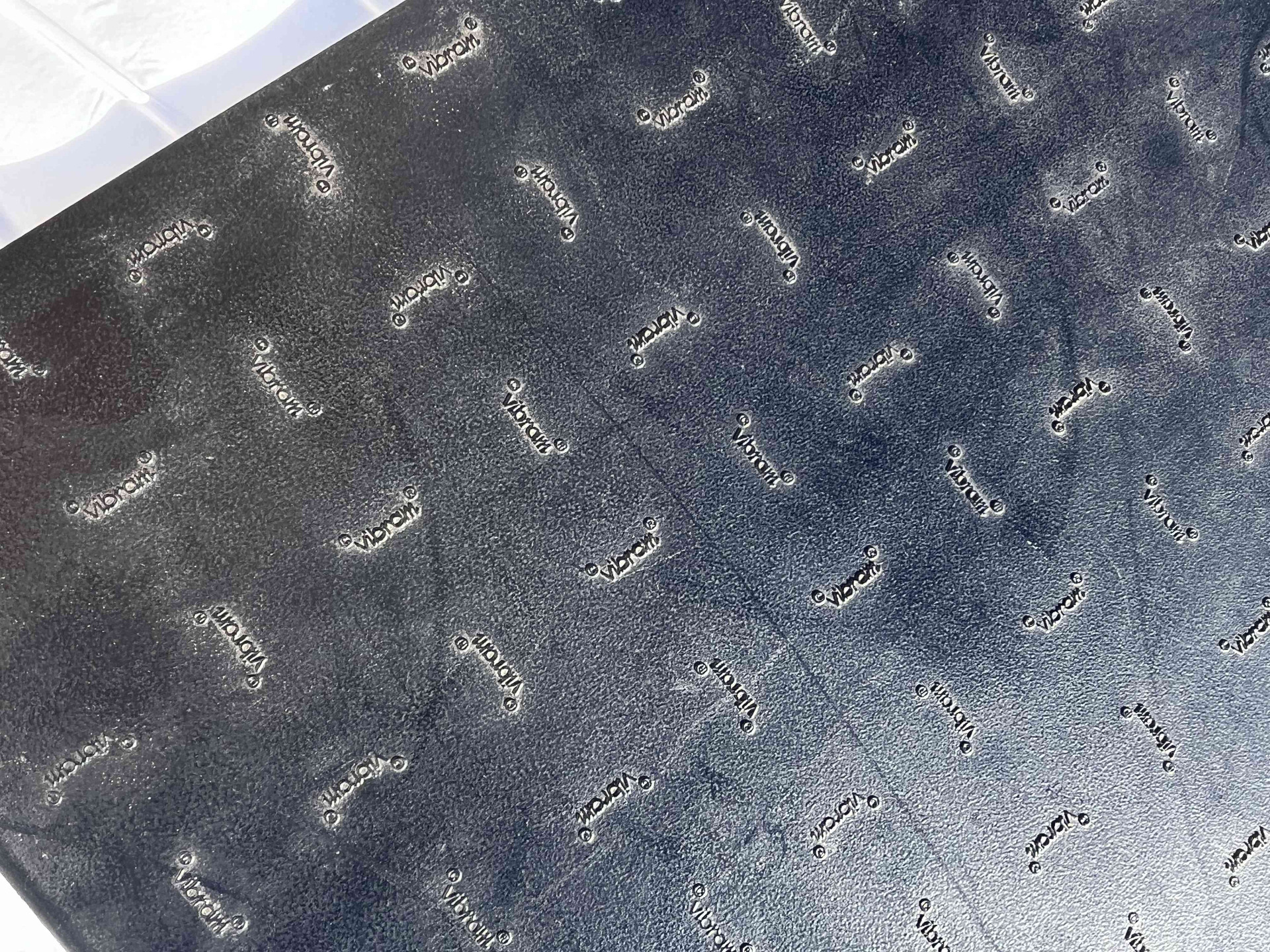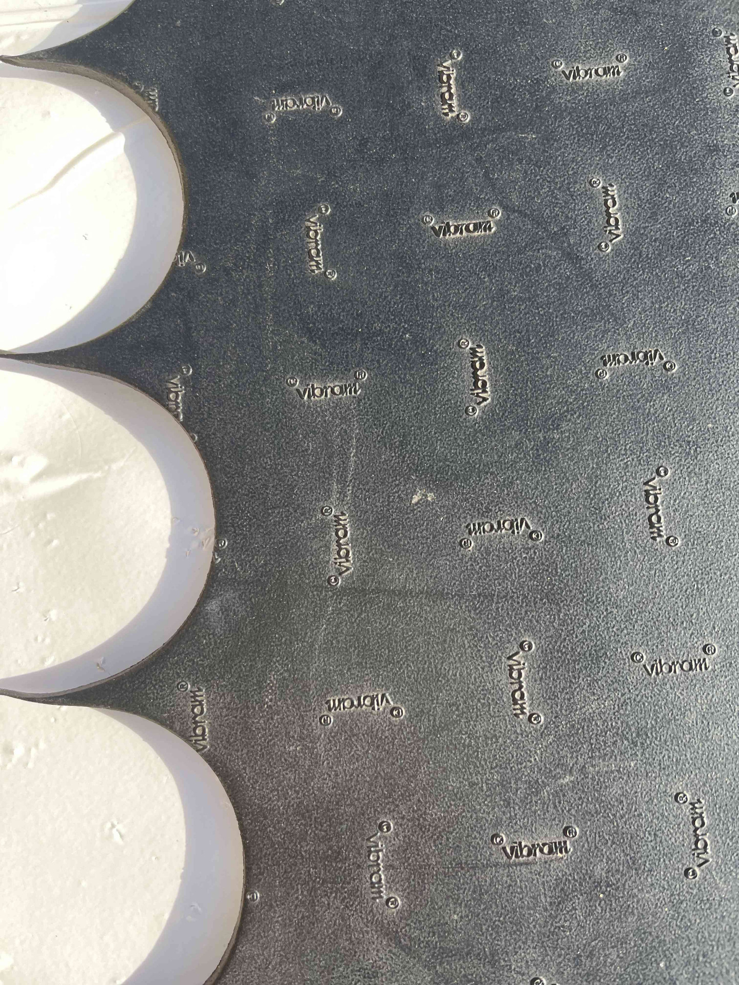 Scampolo gomma rigida Vibram di colore nero per realizzare tacchi.