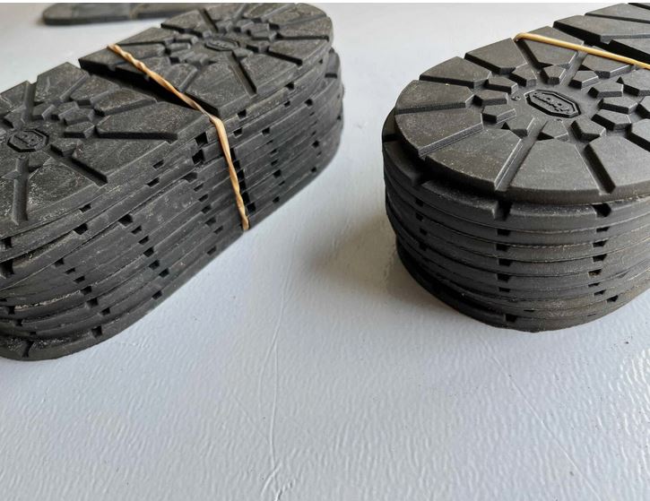 Sopratacchi Tacchi vibram in gomma nera, tranciati e cardati per le riparazioni di scarpe da uomo e donna residuo confezioni da 17 paia.