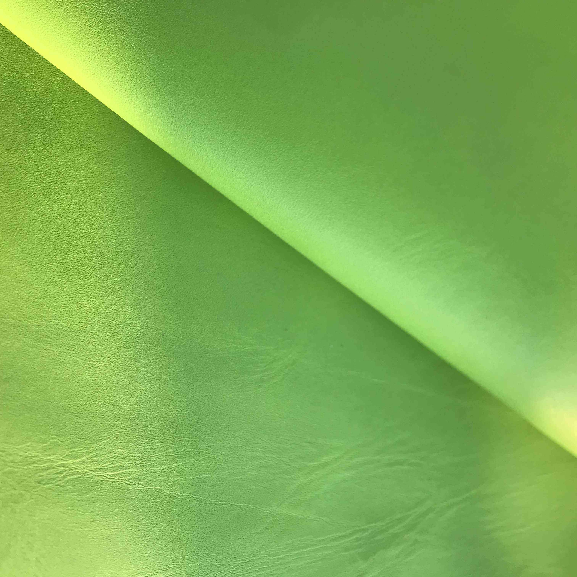 Pellame concia 100% a vegetale liscio colore verde prato ingrasso sintetico, pieno fiore, segni e imperfezioni non sono da considerarsi difetti, ma caratteristiche naturali.
